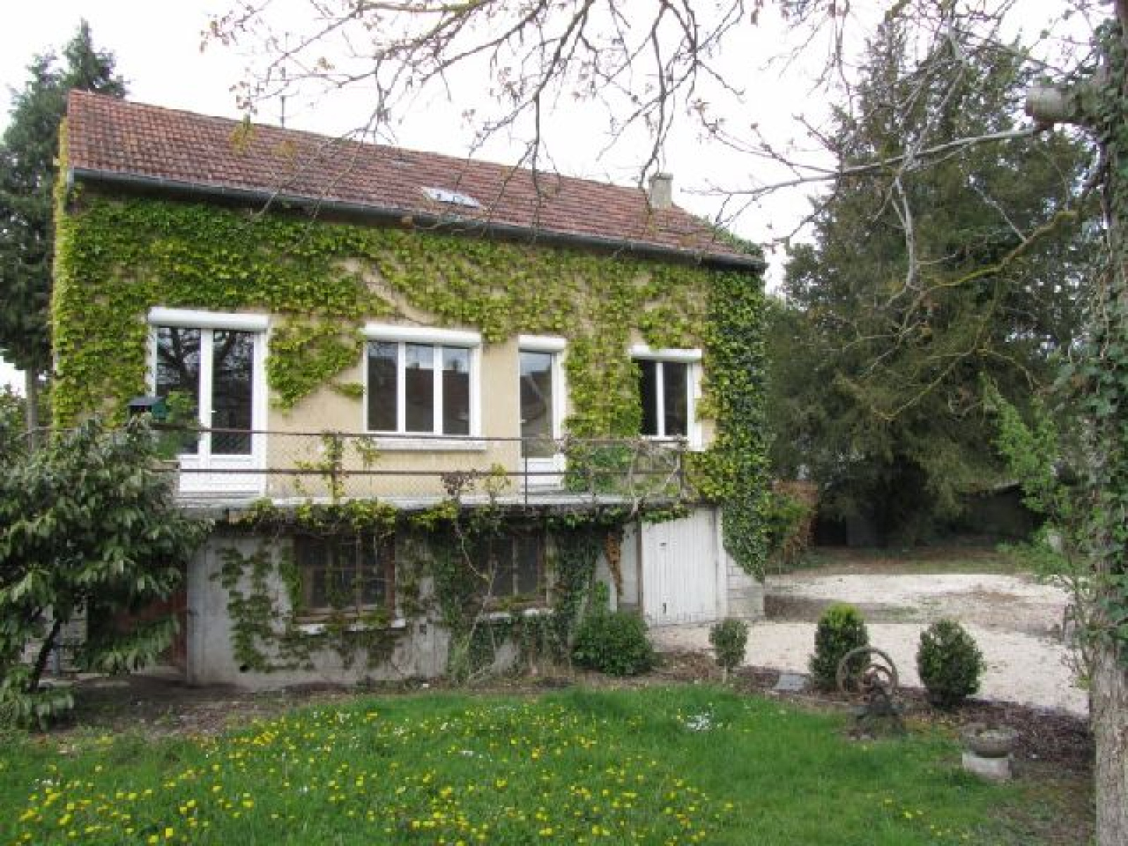Proche centre bourg, au calme et sans vis-à-vis, maison individuelle 3 chambres env. 95 m² habitables sur s/sol complet comprenant : rdc : salon-séjour avec cheminée, cuisine aménagée, chambre, salle de douche, wc - Etage : 2 chambres, une grande mezzanine - S/sol : garage, cave, atelier, buanderie. Chauffage gaz de ville, double-vitrage PVC, volets roulants électriques. Tout-à-l'égout. Terrain clos arboré 653 m². DPE : D
