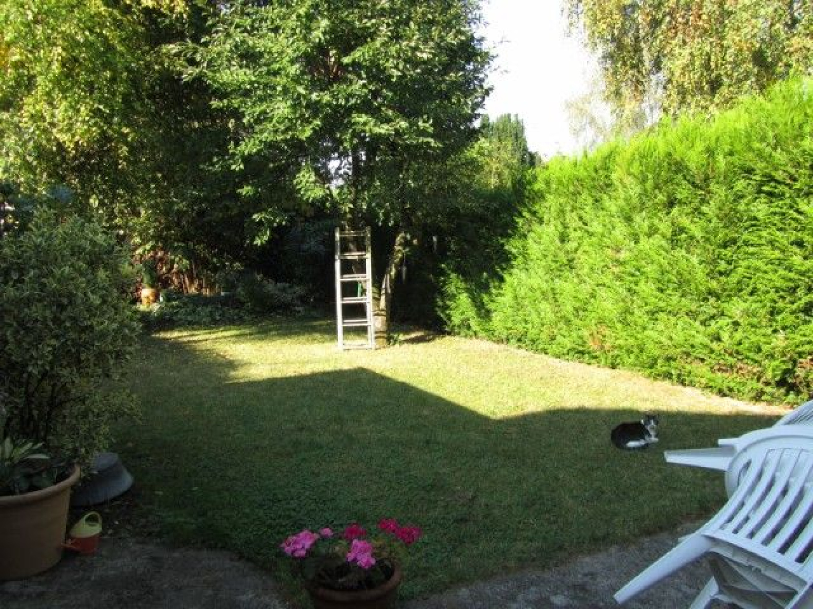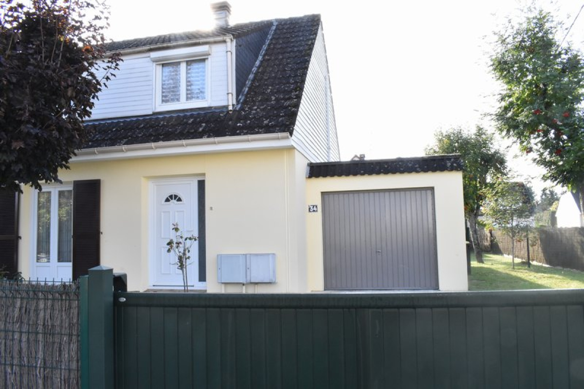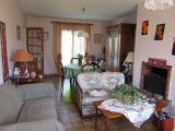 Pavillon situé en lotissement : salon-séjour avec cheminée, cuisine aménagée et équipée, 3 chambres à l'étage, salle de bains. Grande cave de 45m², garage 2 voitures, terrasse. Terrain clos arboré 302 m².
