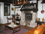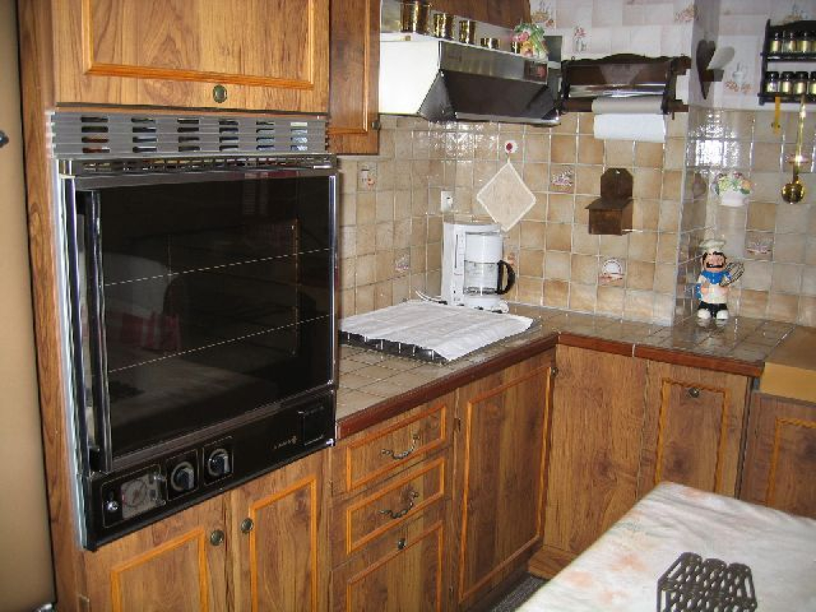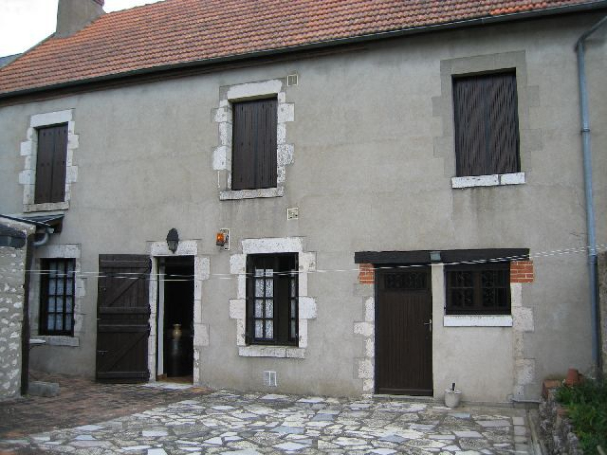 Maison de bourg de 102m², salon avec cheminée, séjour, cuisine aménagée, 2 ch garage et cave, cour.