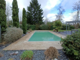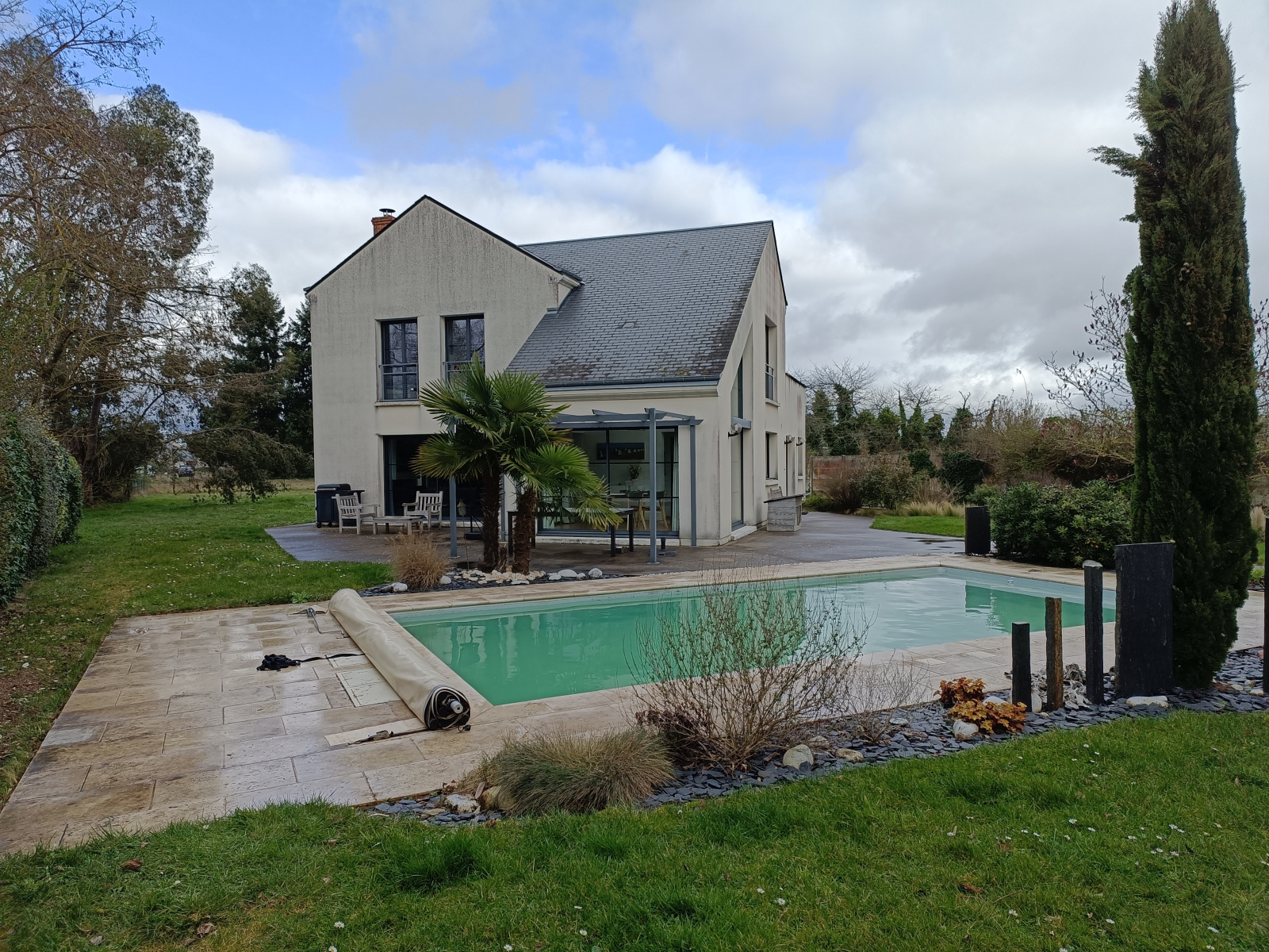 À l’extérieur, découvrez un véritable havre de paix, et profitez d’un magnifique espace paysager en pleine zone verte, sans vis-à-vis, ainsi que d’une piscine parfaite pour vos moments de détente.