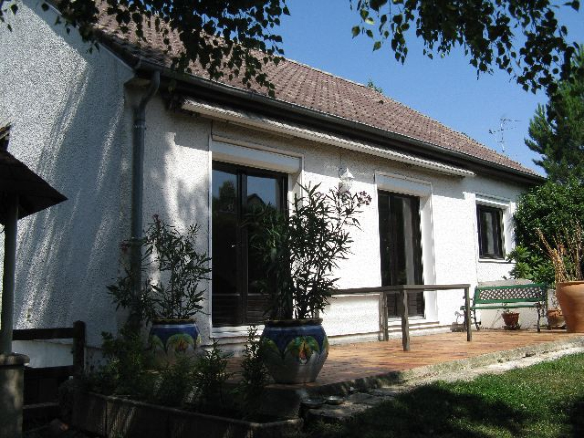 Pavillon de plain-pied avec entrée , séjour/salon avec cheminée, cuisine aménagée, deux chambres , salle de douche, wc séparé. Sous-sol avec bureau, buanderie, cellier, et garage deux voitures. Terrasse exposée sud. Terrain clos de 474 m². Chauffage électrique