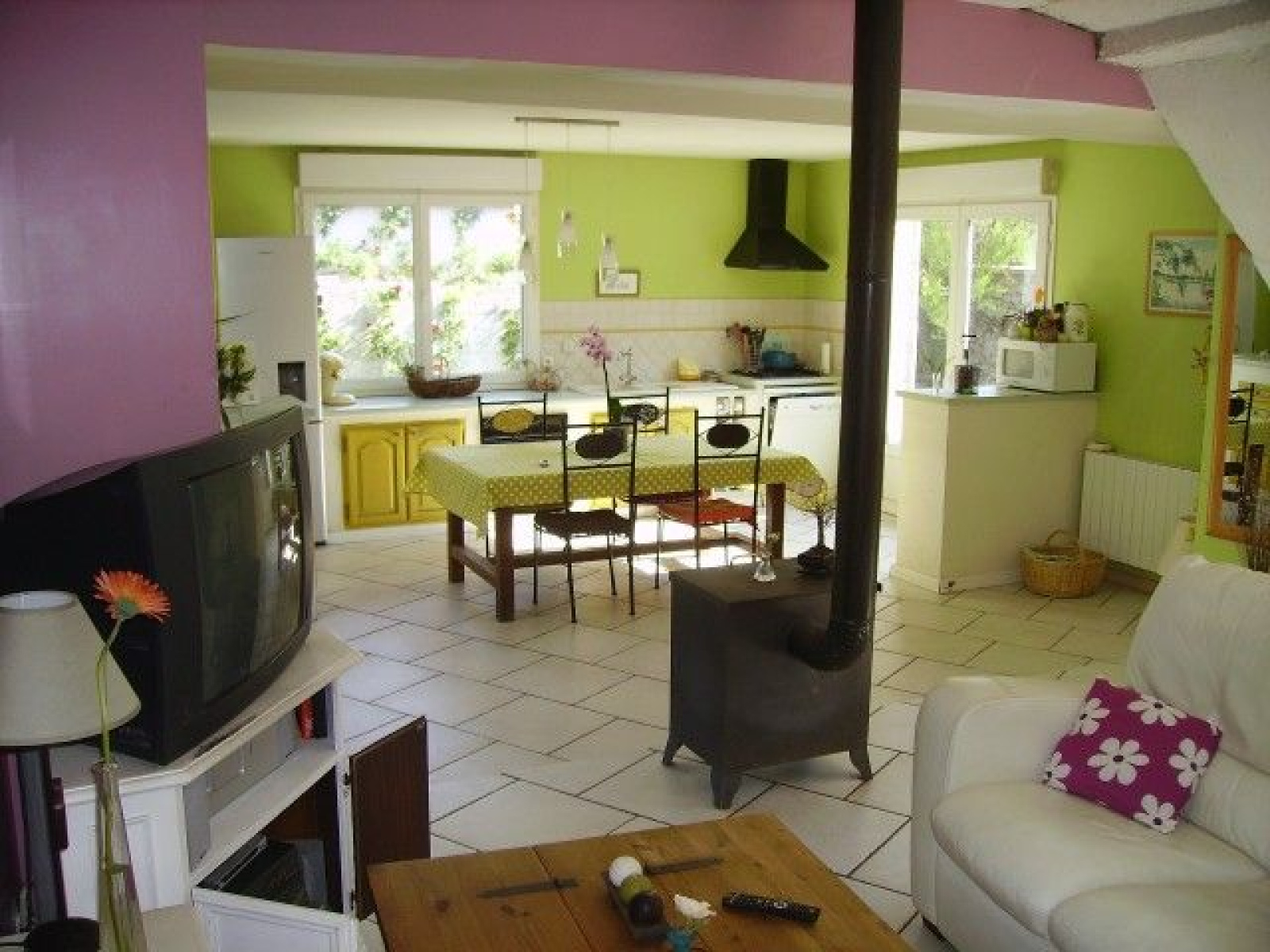 HUISSEAU SUR MAUVES Maison ancienne en partie rénovée env. 125 m² hab. Rdc : Salon/séjour 54 m² avec poêle,baie vitrée et cuisine ouverte aménagée , 1 chbre, wc, s.de bains à finir, et 1 autre pièce à finir. - A l'étage : bureau, 2 chbres, s.de douche avec wc. Cave, grenier. Terrain clos arboré env. 440m². Chauffage gaz citerne, fosse septique. Classe énergie : D