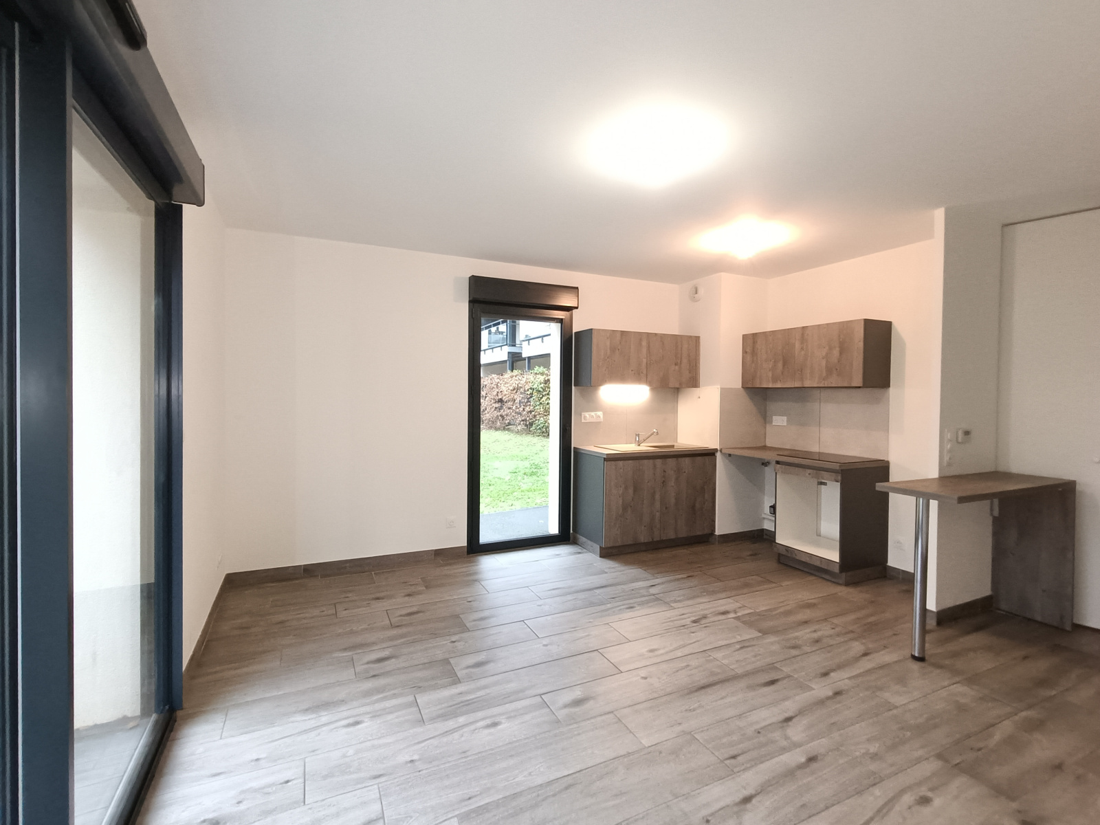 Composé d'une entrée avec placard, une cuisine équipée ouverte sur le séjour avec un accès direct sur la terrasse de 12 m2, une salle de bains, une buanderie, des wc indépendants et 2 chambres dont une avec placard.
