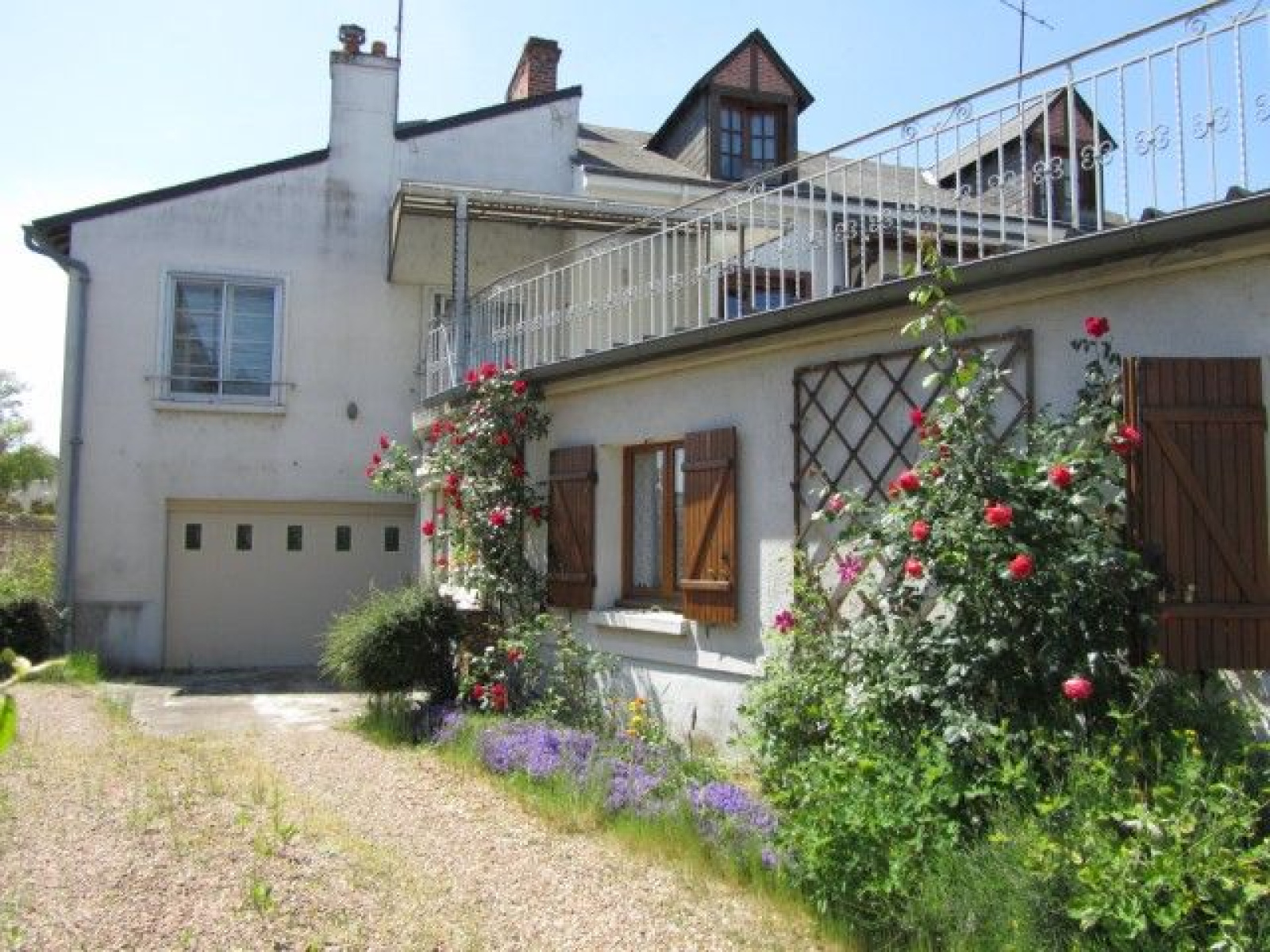 Centre ville de Meung sur Loire, proche gare, écoles et commerces, maison à rafraîchir env.90 m² hab. s/2 niveaux : entrée, séjour, cuisine , autre pièce, 2 chambres, s. de bains, wc séparé, terrasse. Garage accolé, atelier, buanderie. Chauffage gaz de ville. Terrain 254 m². Classe énergie : D